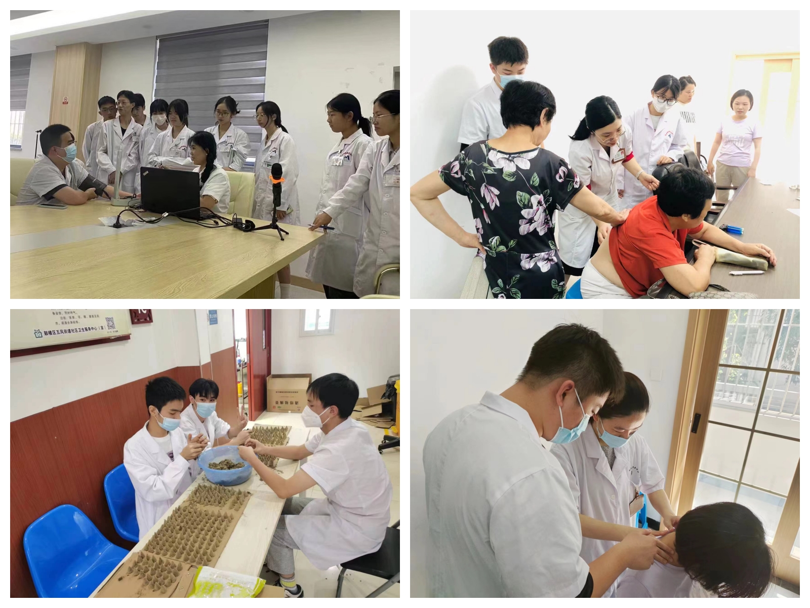 同學(xué)們跟隨帶教老師熟悉各項(xiàng)流程,包含婦保的檔案規(guī)整及建卡流程、孕產(chǎn)婦注意事項(xiàng)、兒童體格檢查流程、預(yù)防針接種注意事項(xiàng)、頸椎病的預(yù)防及門診問診和病歷學(xué)習(xí),同時(shí)也積極參與健康講座、刮痧練習(xí)和三伏灸制作。