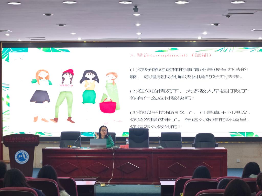 鄭曉婧老師為大家開展《朋輩心理輔導(dǎo)的實(shí)務(wù)操作》主題講座。她針對(duì)心理朋輩輔導(dǎo)工作的內(nèi)容、流程、態(tài)度及輔導(dǎo)策略,進(jìn)行系統(tǒng)而深入的闡述。重點(diǎn)解析賦能與解決建構(gòu)技術(shù),詳細(xì)剖析實(shí)務(wù)操作的具體實(shí)施路徑,并通過現(xiàn)場互動(dòng)來鞏固同學(xué)們的實(shí)務(wù)技能。