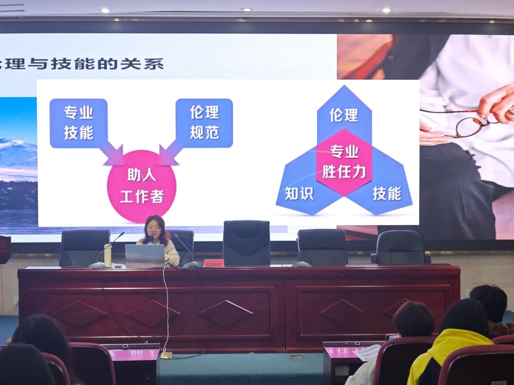 余彩云老師憑借豐富的工作經(jīng)驗(yàn)為大家開展《大學(xué)生心理問題的初步鑒別》主題授課。她通過生動(dòng)具體的案例分析,向同學(xué)們傳授了大學(xué)生常見心理問題的識(shí)別與初步干預(yù)的策略,積極與學(xué)生進(jìn)行互動(dòng)交流,為他們?cè)趯?shí)際工作中提供有力的指導(dǎo)。