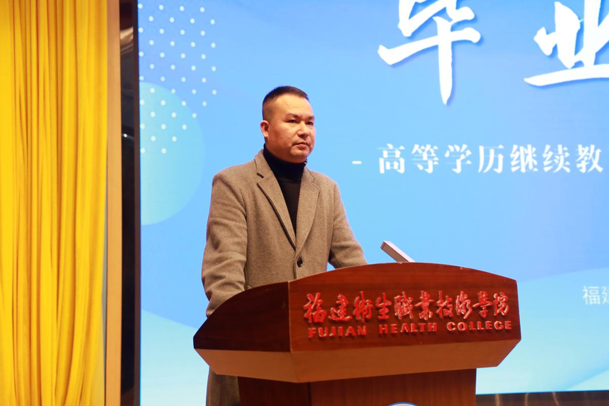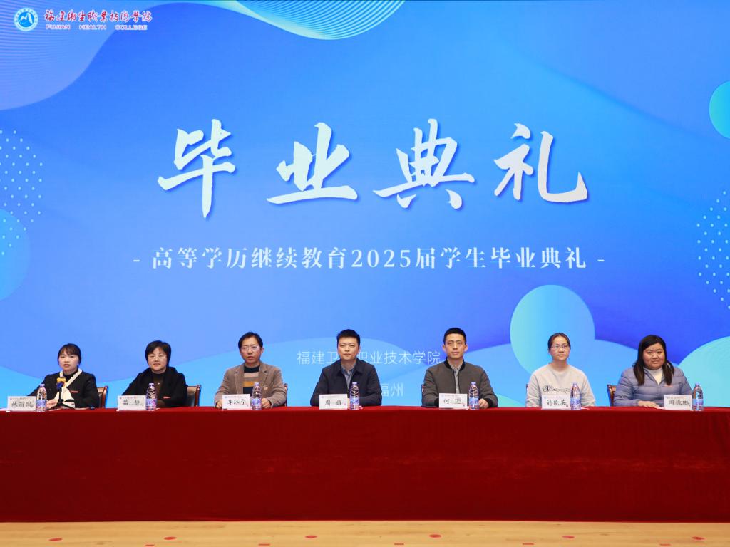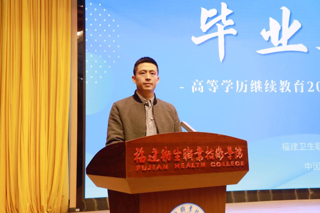 12月27日,我校隆重舉行高等學(xué)歷繼續(xù)教育2025屆學(xué)生畢業(yè)典禮。副校長周雄,繼續(xù)教育學(xué)院、護(hù)理學(xué)院、藥學(xué)院、醫(yī)學(xué)院、醫(yī)學(xué)技術(shù)與工程學(xué)院相關(guān)領(lǐng)導(dǎo)老師,畢業(yè)班班主任以及部分2025屆畢業(yè)生參加,1100多名外地畢業(yè)生收看線上直播。畢業(yè)典禮由繼續(xù)教育學(xué)院副院長林麗鳳主持。