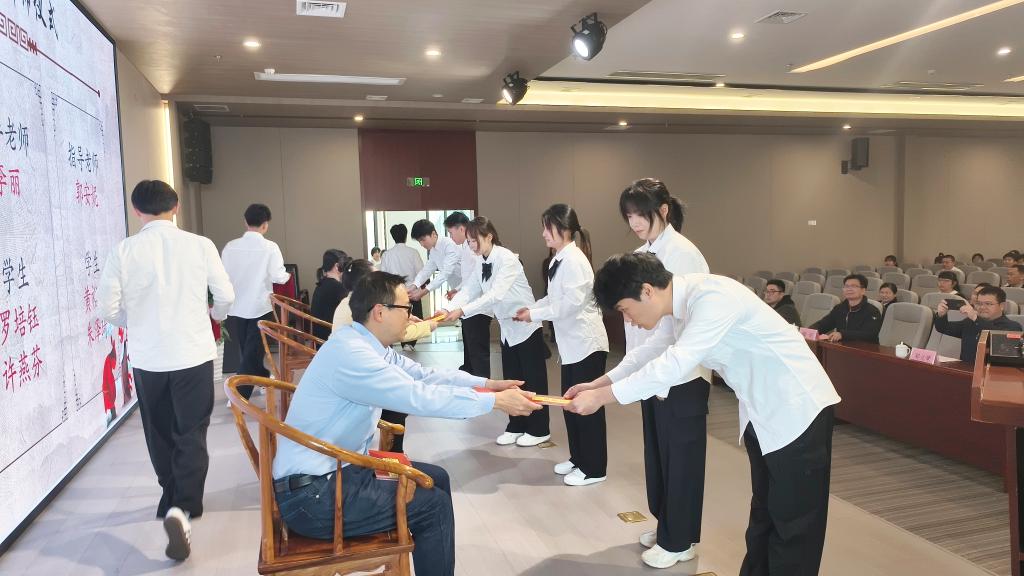 學生向各自導師行禮、呈拜師帖、獻花