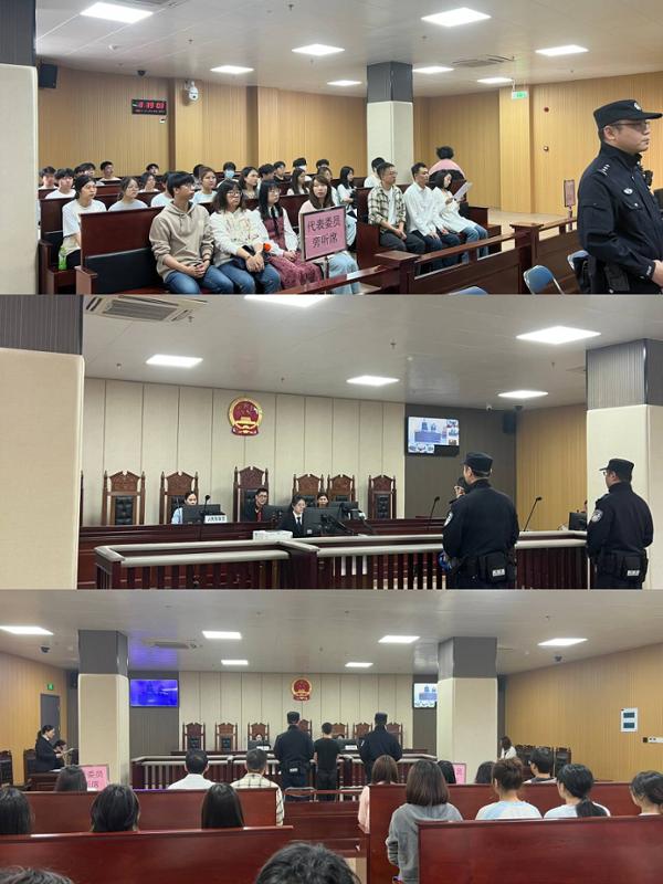 在法院工作人員的引導(dǎo)下,師生們進入審判庭。庭審過程莊嚴(yán)肅穆,同學(xué)們自覺遵守法庭紀(jì)律,認真聆聽,對法律的嚴(yán)謹(jǐn)與公正有了直觀的感受。這起案件涉及一名外賣員因客戶差評而心生怨恨,持刀進行報復(fù)的事件。通過鮮活案件的審理,同學(xué)們不僅了解了法庭的程序,更深刻體會到法律的嚴(yán)肅性和司法的公平正義。