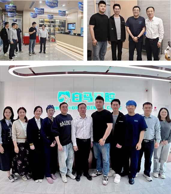 在福州白馬口腔奧體分店,2013屆口腔醫(yī)學專業(yè)校友、企業(yè)創(chuàng)始人劉景冬向徐偉一行詳細介紹企業(yè)架構(gòu)與發(fā)展現(xiàn)狀。座談會上,徐偉介紹了學校的歷史沿革、辦學規(guī)模及學科建設(shè)情況,并對白馬口腔的企業(yè)規(guī)模、良好口碑及完善診療配套給予高度評價,希望雙方在人才培養(yǎng)、學生就業(yè)等領(lǐng)域深化合作,加強供需對接,共同助力口腔醫(yī)療行業(yè)高質(zhì)量發(fā)展。會后,學校一行實地走訪參觀分店,深入了解企業(yè)運營模式與工作環(huán)境。白馬口腔以合伙人模式發(fā)展壯大,超50%醫(yī)護人員均來自我校,校友們的出色成就為學校增光添彩。