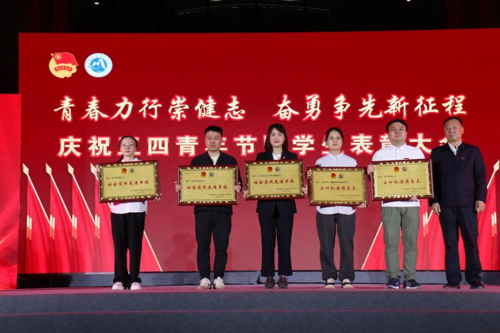 校黨委書記曾武祈為五四紅旗團(tuán)總支、社會實踐先進(jìn)單位獲獎代表頒獎。