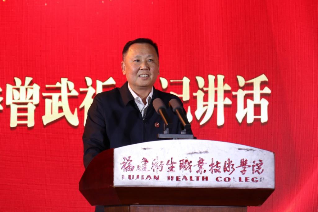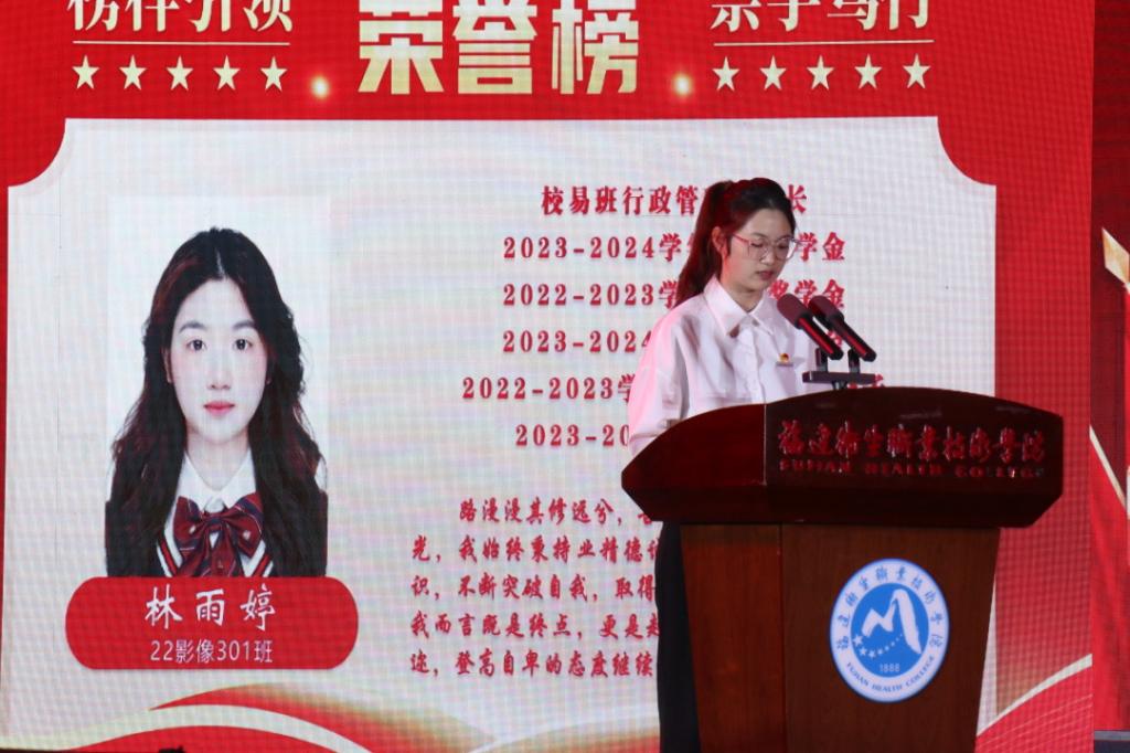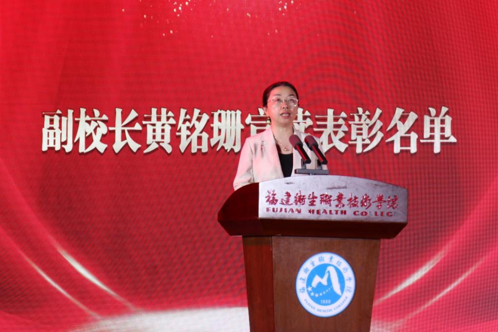 校長徐偉為文明班級、國家獎學(xué)金、國家勵志獎學(xué)金、福建省紅十字會南丁格爾護(hù)理獎學(xué)金、技能賽獲獎個人代表頒獎。