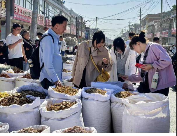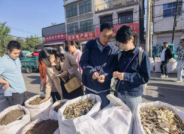 同時(shí),團(tuán)隊(duì)前往全國最大的中藥材飲片交易市場(chǎng)。教師們仔細(xì)觀察不同藥材的形態(tài)、質(zhì)地,詢問商家關(guān)于藥材產(chǎn)地、功效及市場(chǎng)行情,了解中藥材流通過程及市場(chǎng)需求動(dòng)態(tài)。為更全面了解市場(chǎng),團(tuán)隊(duì)在企業(yè)帶領(lǐng)下奔赴十八里藥材早市,為教學(xué)與實(shí)踐相結(jié)合積累了鮮活素材。