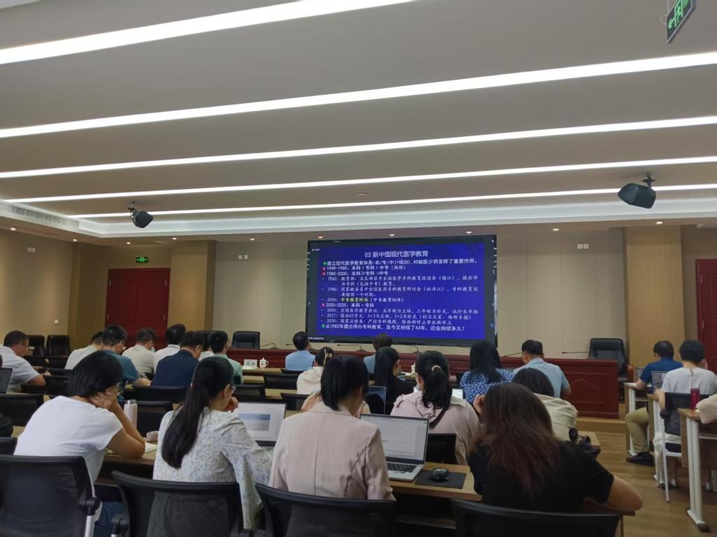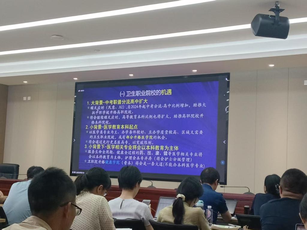 6月10日,全國衛(wèi)生健康職業(yè)教育教學(xué)指導(dǎo)委員會專家系列講座(第三期)在線上舉辦。我校在厚德樓六樓會議室設(shè)立分會場,校長徐偉,副校長周雄、朱扶蓉以及相關(guān)職能處室負責人、二級學(xué)院負責人、骨干教師等近百人參加會議。