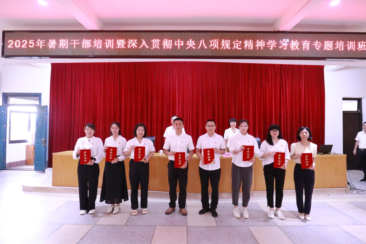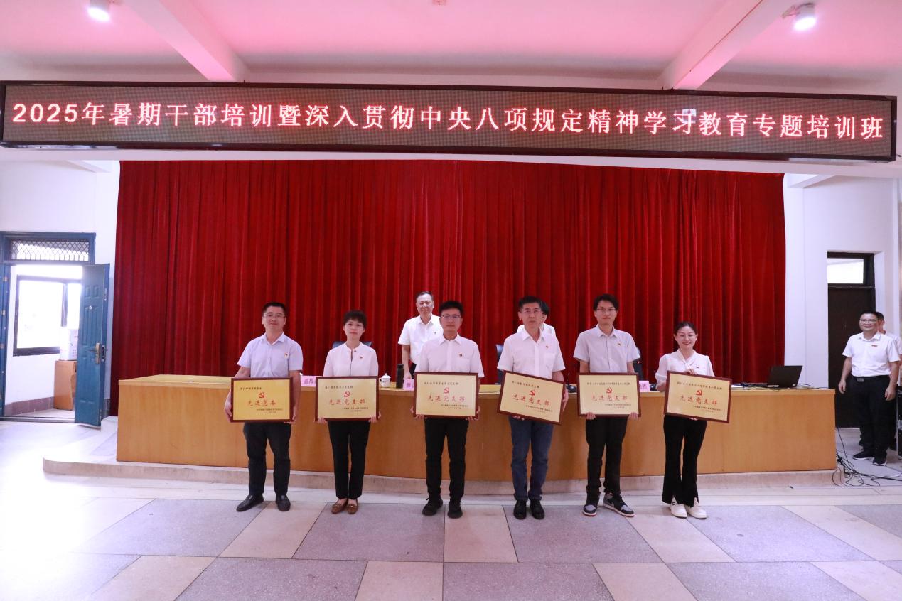 本次開班式上還進(jìn)行了2025年“兩優(yōu)一先”表彰儀式,李美華宣讀表彰決定,校領(lǐng)導(dǎo)們?yōu)槭鼙碚么眍C獎。