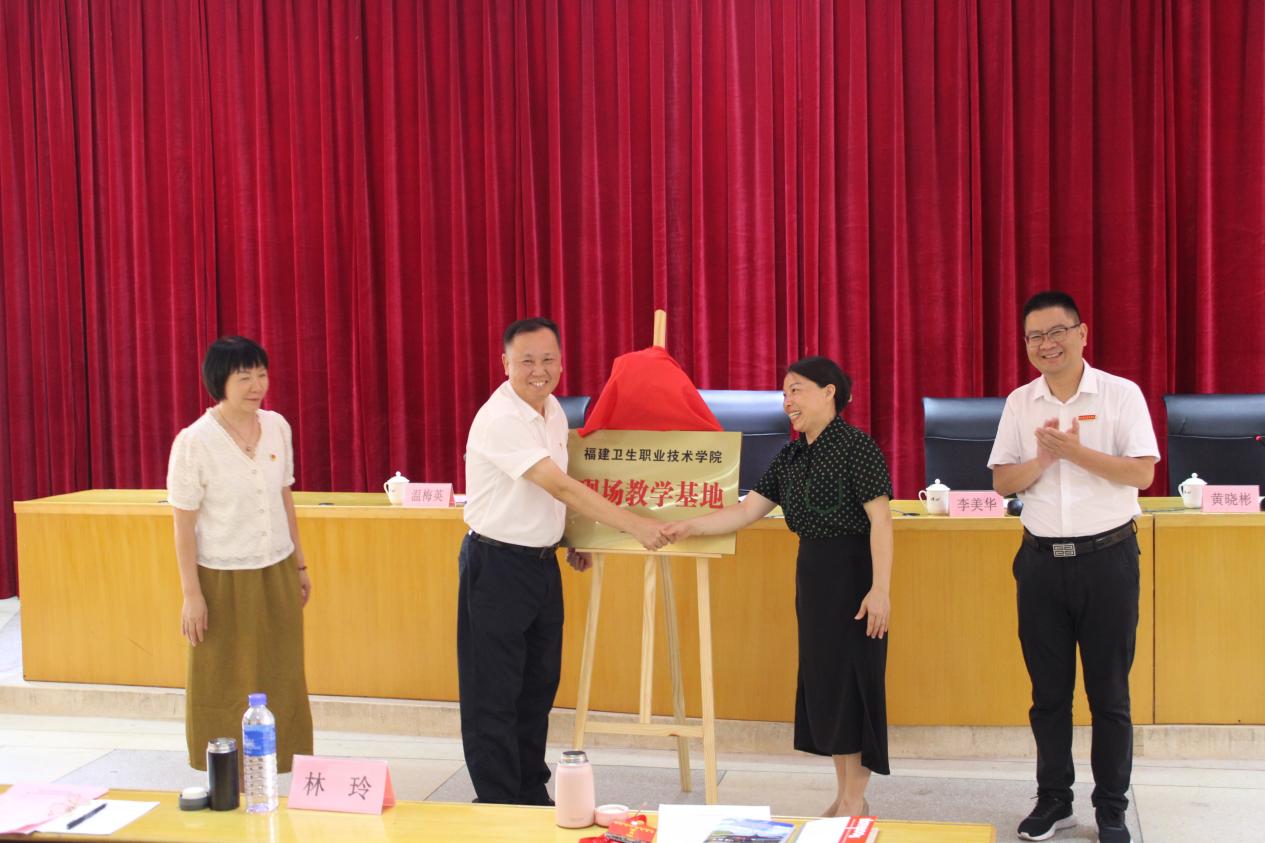 隨后,曾武祈和溫梅英共同為福建衛(wèi)生職業(yè)技術(shù)學(xué)院現(xiàn)場教學(xué)基地揭牌。