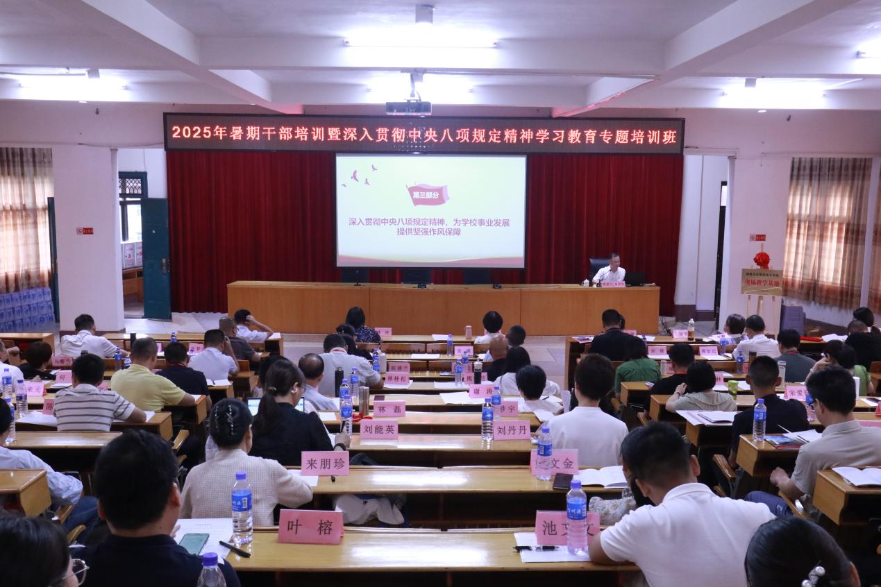 6月30日,福建衛(wèi)生職業(yè)技術(shù)學(xué)院2025年暑期干部培訓(xùn)暨深入貫徹中央八項規(guī)定精神學(xué)習(xí)教育專題培訓(xùn)班在長汀縣委黨校開班。長汀縣人大常委會副主任溫梅英,校黨委書記曾武祈、黨委副書記李美華、紀(jì)委書記林玲,副校長黃銘珊、周雄、朱扶蓉出席開班式,全校中層以上干部、各級黨務(wù)干部共101人參加本次培訓(xùn),開班式由長汀縣委黨校常務(wù)副校長黃曉彬主持。