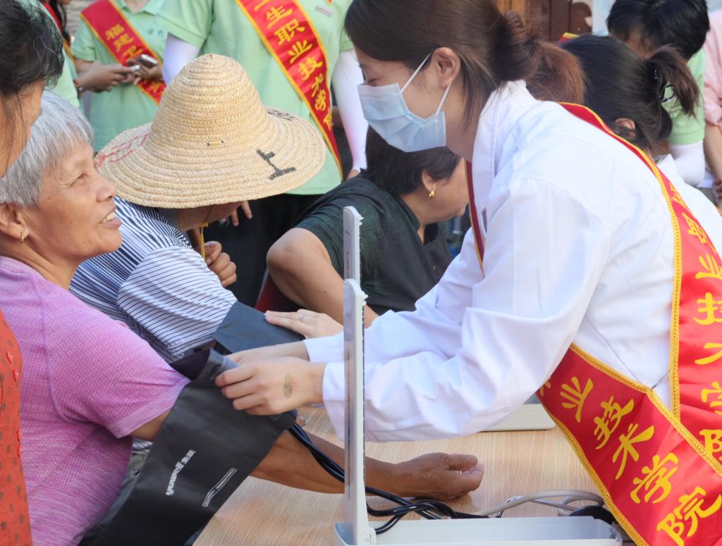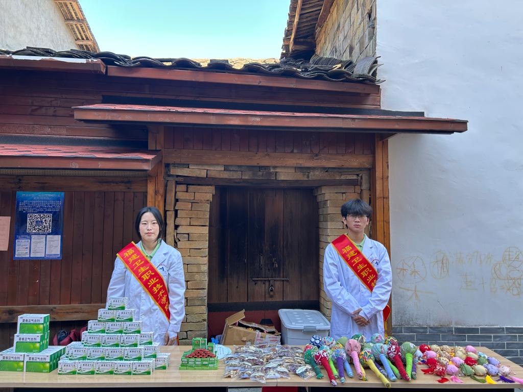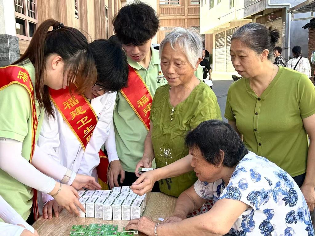 盛夏入五夫,“榮藥”踐初心。在五一村新時代文明實踐站,“榮藥”實踐隊分設(shè)血糖、血壓義診組,為130多名村民細(xì)致篩查健康隱患?,F(xiàn)場發(fā)放自制中藥香囊、艾草錘、文化宣傳扇350多件,傳遞傳統(tǒng)智慧。贈送藿香正氣水等防暑藥品、消暑花茶460多件,讓中醫(yī)藥關(guān)懷浸潤?quán)l(xiāng)土。