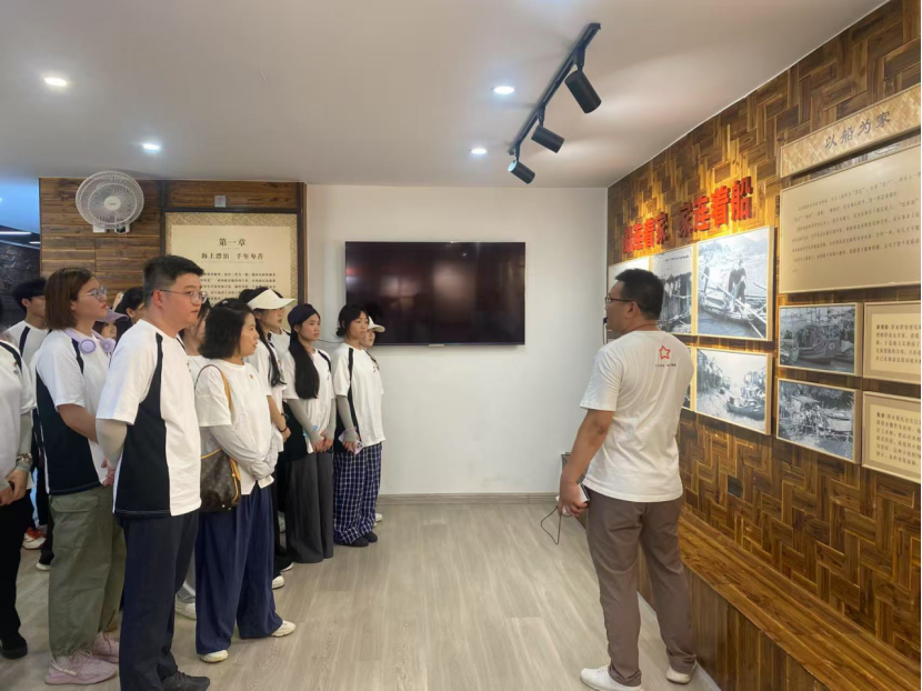 6月21日,實(shí)踐隊(duì)抵達(dá)下岐村。隊(duì)員們走進(jìn)連家船民上岸主題展館,館內(nèi)豐富的史料和生動的故事,如同一幅幅歷史畫卷在眼前徐徐展開,讓實(shí)踐隊(duì)員深刻了解到連家船民從漂泊不定到定居安家的艱辛歷程。那一段段飽含血淚與希望的歷史,不僅是連家船民個人命運(yùn)的轉(zhuǎn)折,更是時代發(fā)展進(jìn)程中鄉(xiāng)村變遷的縮影。