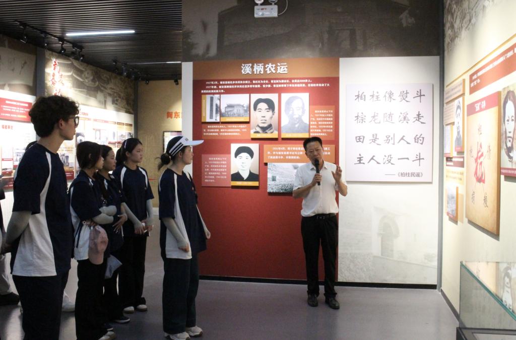 實(shí)踐隊(duì)員認(rèn)真聆聽講解員介紹紅色革命事跡