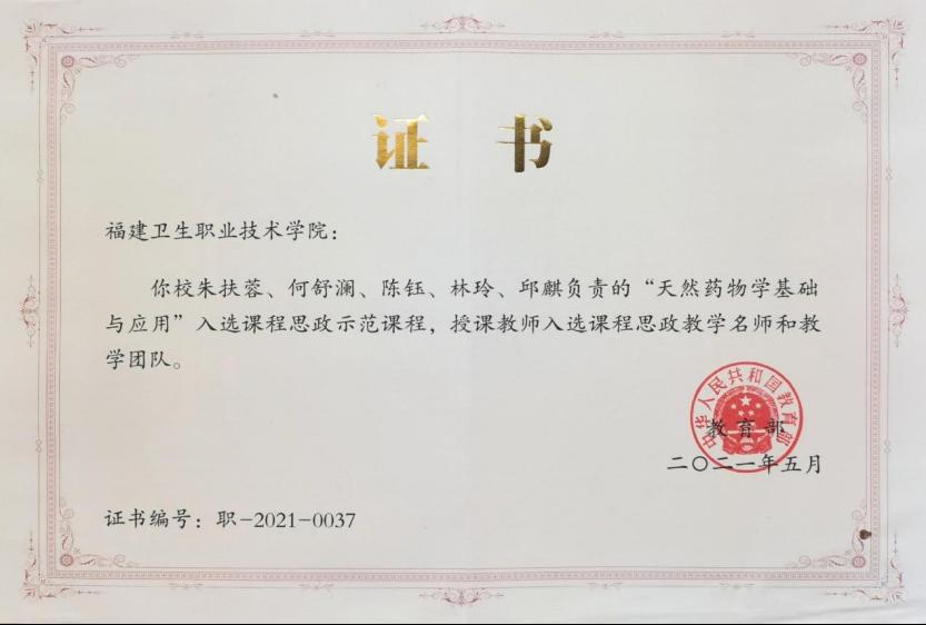 《中藥學(xué)、藥學(xué)專(zhuān)業(yè)校企協(xié)同培養(yǎng)技術(shù)技能型人才培養(yǎng)模式的探索與實(shí)踐》,獲2017年福建省職業(yè)教育教學(xué)成果一等獎(jiǎng) |