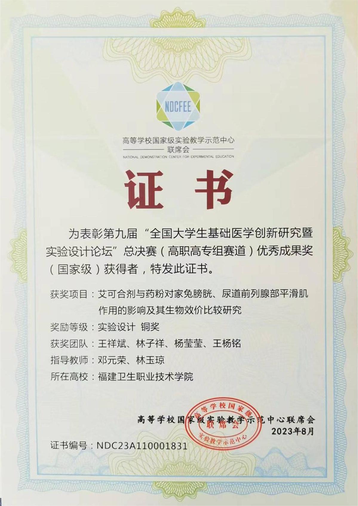 近年來,學(xué)生榮獲全國(guó)大學(xué)生醫(yī)學(xué)創(chuàng)新比賽省級(jí)一等獎(jiǎng)3項(xiàng)、二等獎(jiǎng)3項(xiàng)、國(guó)家級(jí)銀獎(jiǎng)2項(xiàng)、銅獎(jiǎng)2項(xiàng),職業(yè)技能競(jìng)賽省級(jí)一等獎(jiǎng)2項(xiàng)、二等獎(jiǎng)3項(xiàng)、三等獎(jiǎng)2項(xiàng),在全國(guó)職業(yè)院校臨床醫(yī)學(xué)專業(yè)技能大賽和福建省大學(xué)生軍事技能比武中多次榮獲獎(jiǎng)項(xiàng)。