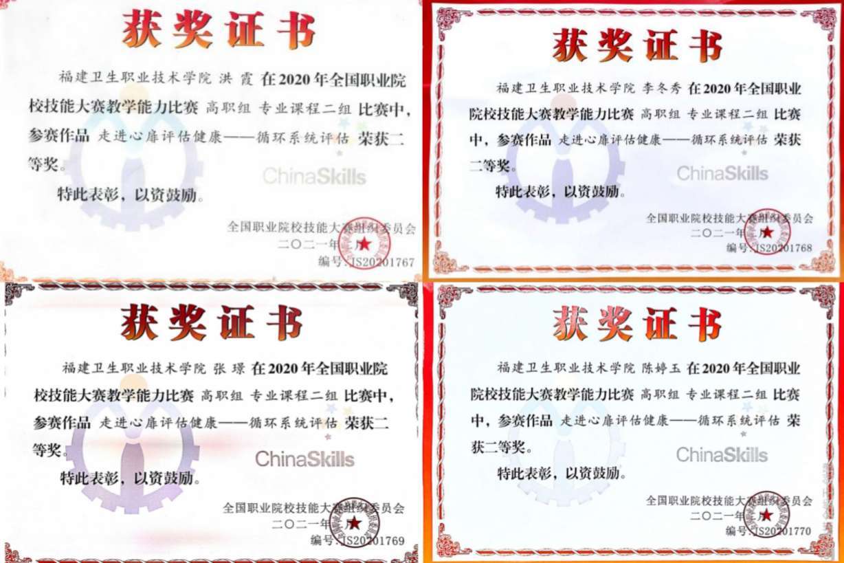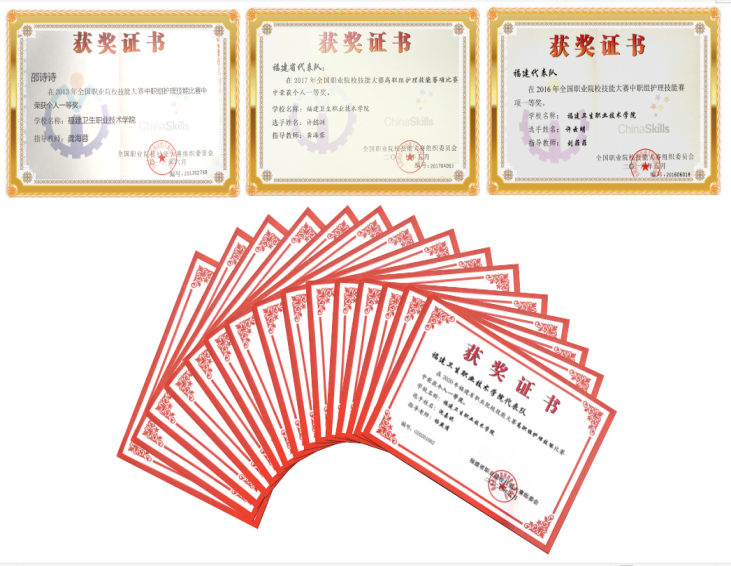 近年來,護(hù)理專業(yè)學(xué)生參加職業(yè)院校護(hù)理技能大賽,榮獲國賽一等獎(jiǎng)3項(xiàng)、二等獎(jiǎng)9項(xiàng)、三等獎(jiǎng)6項(xiàng);省賽一等獎(jiǎng)22項(xiàng)、二等獎(jiǎng)30項(xiàng)、三等獎(jiǎng)20項(xiàng)。