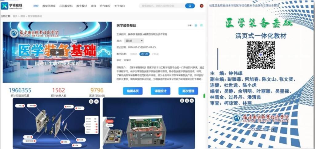 智能嵌入式控制技術(shù)、醫(yī)用 X 射線成像技術(shù)及設(shè)備、CT 技術(shù)及設(shè)備、醫(yī)用超聲成像技術(shù)及設(shè)備、醫(yī)療設(shè)備質(zhì)量控制與檢測、醫(yī)電產(chǎn)品組裝與調(diào)試。建設(shè)有福建省省級職業(yè)教育智能醫(yī)療裝備技術(shù)專業(yè)教學資源庫。
