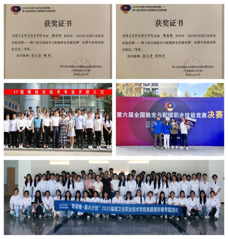 眼視光技術(shù)專業(yè)創(chuàng)辦于2012年,旨在培養(yǎng)雙眼保健技術(shù)、專業(yè)驗(yàn)光配鏡技能及服務(wù)理念于一體的“醫(yī)工商”復(fù)合型眼視光技術(shù)人才,為福建省高水平高職專業(yè)群重點(diǎn)建設(shè)專業(yè)。專業(yè)有優(yōu)良的專兼職教師團(tuán)隊(duì),專業(yè)課程《中級(jí)驗(yàn)光師》獲批“福建省優(yōu)秀繼續(xù)教育網(wǎng)絡(luò)課程”。 專業(yè)重視技術(shù)技能操作,2021年獲批眼鏡驗(yàn)光員和眼鏡定配工職業(yè)技能等級(jí)培訓(xùn)和鑒定考核站點(diǎn)獲批,并面向社會(huì)開(kāi)展培訓(xùn)和考核認(rèn)定工作。專業(yè)積極依托多元合作,深化協(xié)同育人,與福州東南眼科醫(yī)院、華廈眼科醫(yī)院集團(tuán)、福州愛(ài)爾眼科醫(yī)院、福建醫(yī)科大學(xué)附屬協(xié)和醫(yī)院、福州市兒童醫(yī)院、福州市第一醫(yī)院等十幾所行業(yè)單位開(kāi)展合作,共同完成實(shí)踐教學(xué)活動(dòng),2016年獲批“福建省第二批現(xiàn)代學(xué)徒制試點(diǎn)項(xiàng)目”,2017年獲批“福建省職業(yè)院校產(chǎn)教融合示范專業(yè)點(diǎn)”,2021年獲批開(kāi)展“二元制”人才模式培養(yǎng),2023年被確定為首批福建省兒童青少年近視防控基地。2024年學(xué)校兩名教師被福建省教育廳聘為福建省兒童青少年近視防控省級(jí)宣講團(tuán)成員。