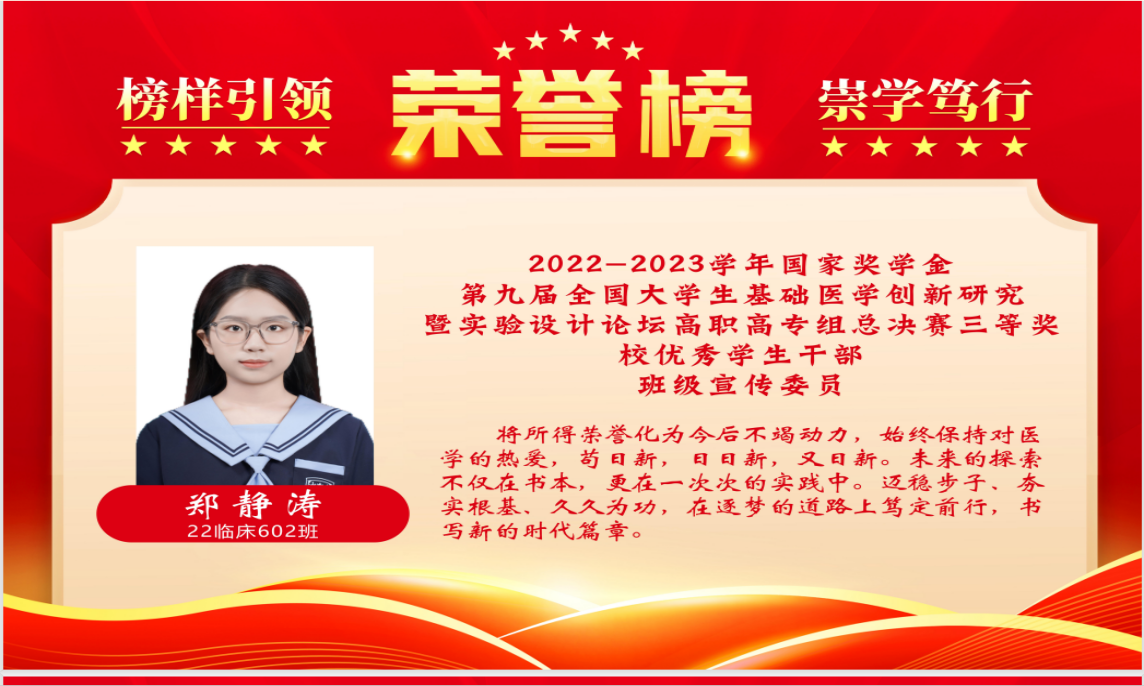 他們學業(yè)成績耀眼:1人榮獲國家獎學金,6人獲國家勵志獎學金,33人獲學校特等、一等獎學金等,40名學生轉(zhuǎn)入福建醫(yī)科大學本科階段學習。