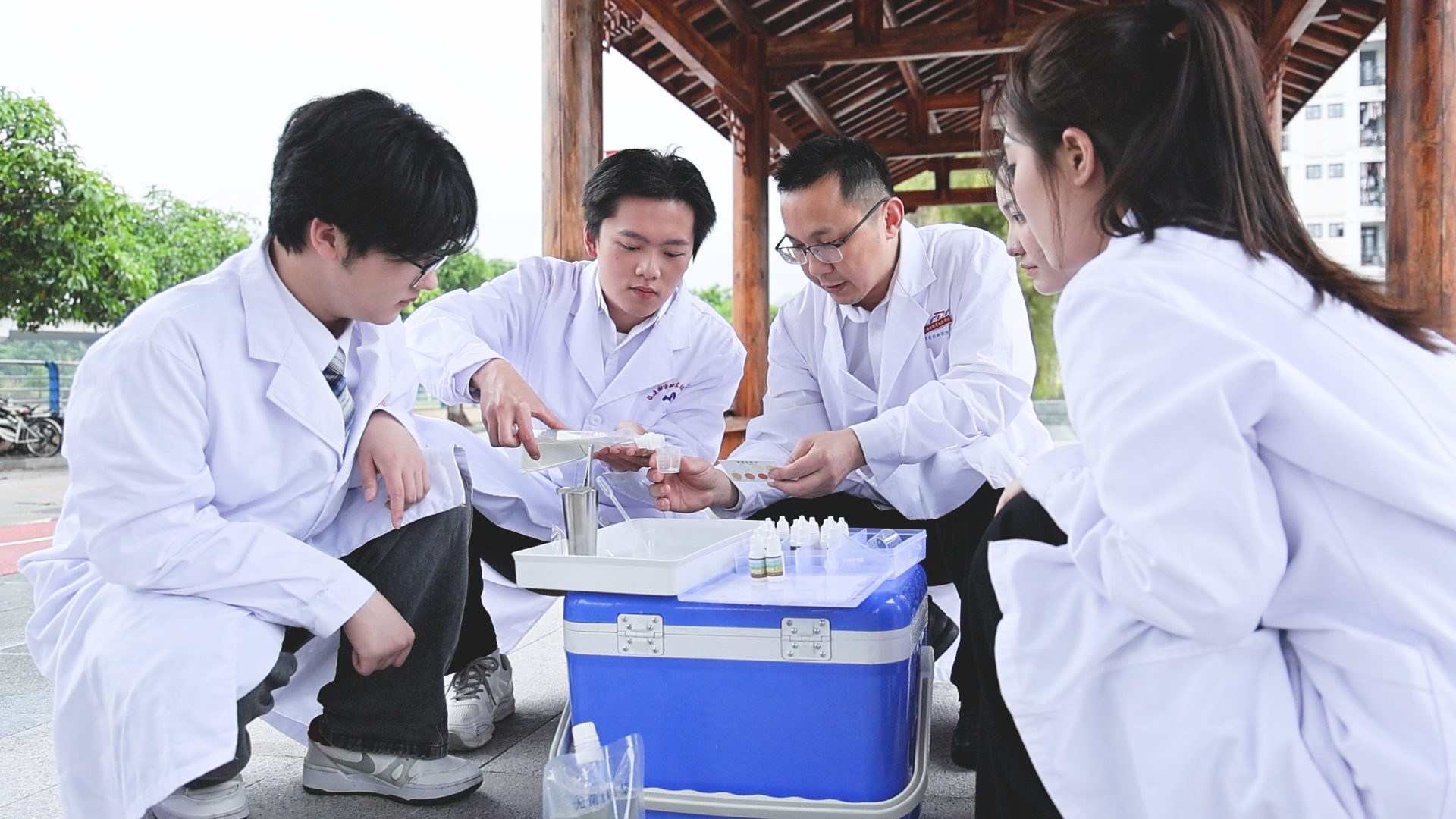 專業(yè)帶頭人林麒老師在指導(dǎo)水質(zhì)檢測