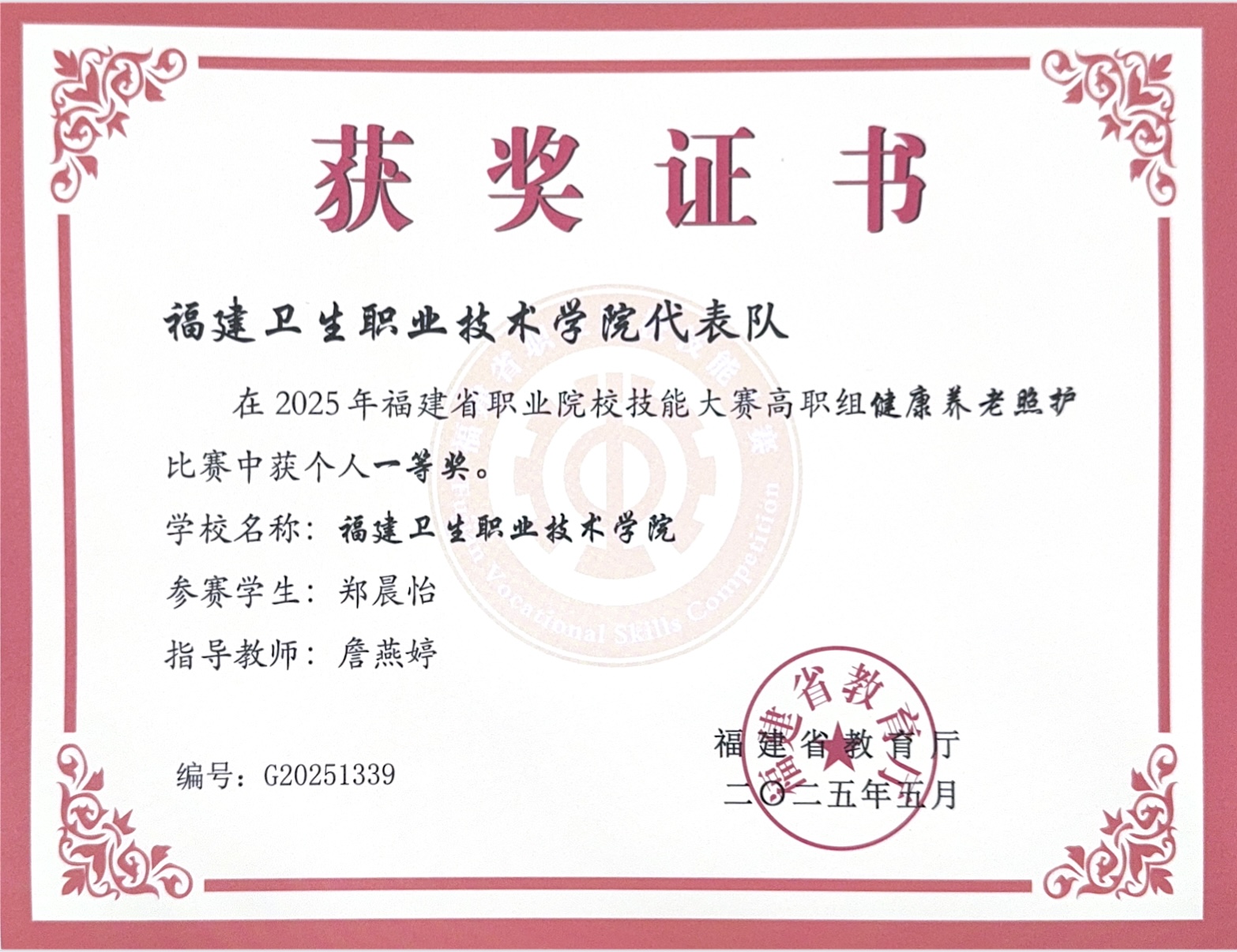 獲福建省職業(yè)院校技能大賽健康與社會(huì)照護(hù)賽項(xiàng),二等獎(jiǎng)2項(xiàng) |