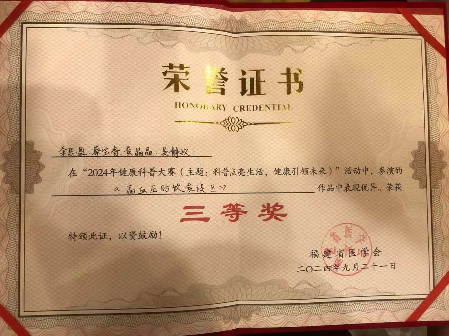 學(xué)生獲健康科普大賽三等獎(jiǎng)