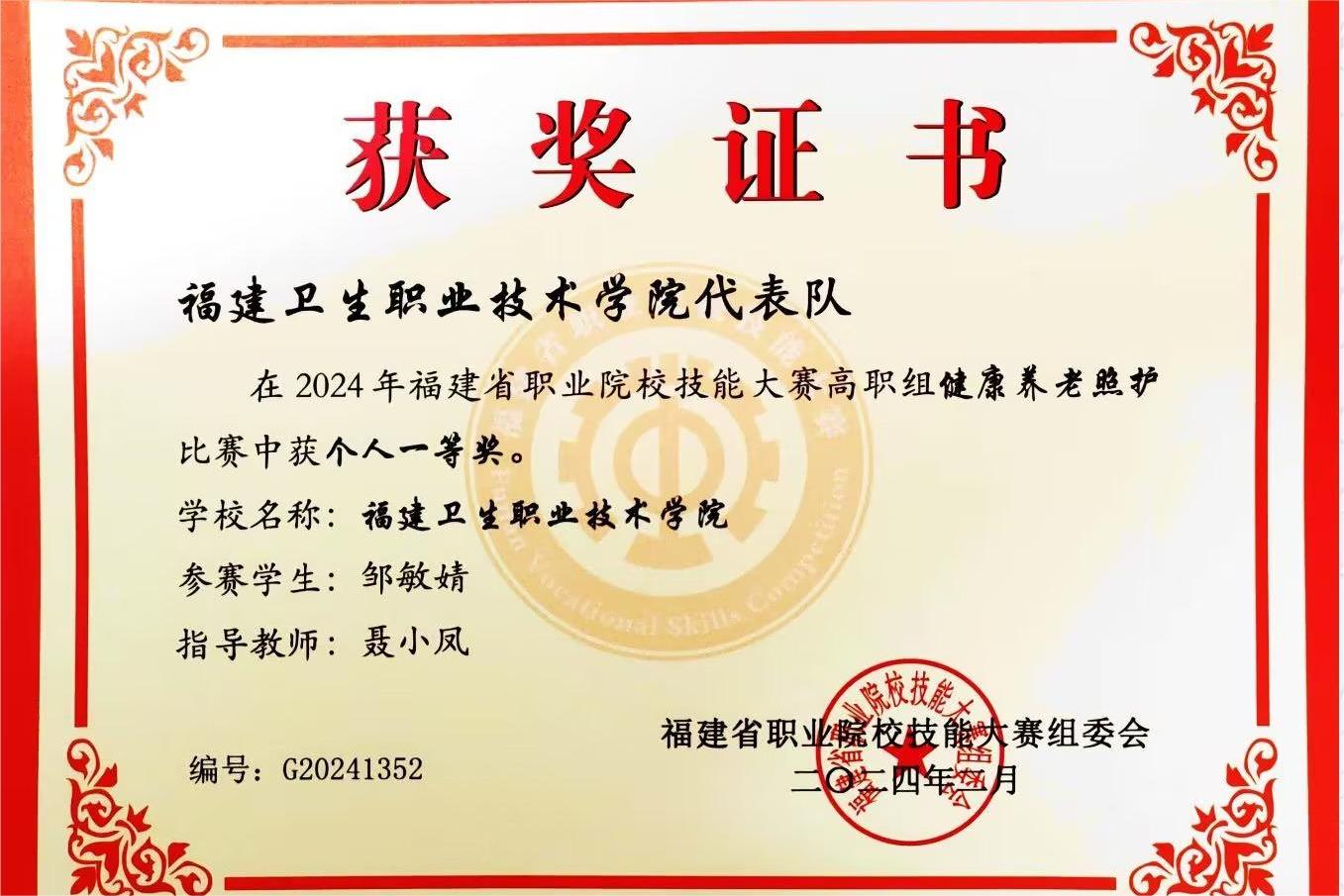 獲福建省職業(yè)院校技能大賽健康與社會(huì)照護(hù)賽項(xiàng),三等獎(jiǎng)2項(xiàng) |