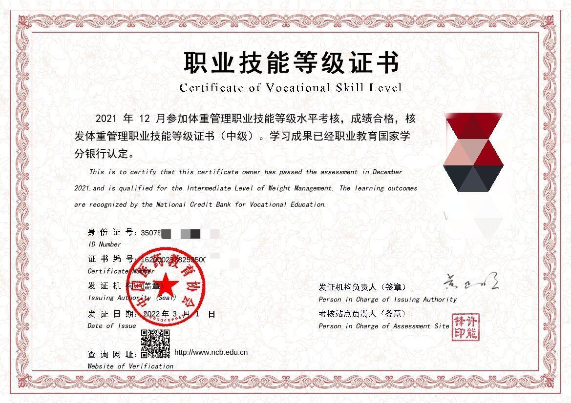 1+X體重管理職業(yè)技能等級(jí)證書(shū)