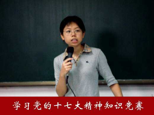 通過競賽讓同學們對黨的十七大精神及新黨章有了更深刻的認識。此次知識競賽活動的順利進行,是對我系學生一次黨的基本知識教育,更是對全系學生學習十七大精神的一次鞭策和鼓舞。(藥學系)