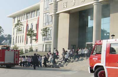 演練于下午三時三十分正式開始,分為火災(zāi)報警、人員緊急疏散逃生和火災(zāi)撲救三個環(huán)節(jié)。演練模擬圖書館著火,學(xué)院監(jiān)控室接到報警后,立即報告院領(lǐng)導(dǎo)并撥打火警“119”;學(xué)院啟動消防預(yù)案,老師引導(dǎo)學(xué)生迅速逃離火災(zāi)現(xiàn)場;閩侯縣公安消防大隊一中隊派出14名消防官兵,3部消防車進(jìn)行滅火。演練過程指揮有力、行動有序。演練現(xiàn)場人聲鼎沸,氣氛緊張,秩序井然,演習(xí)十分逼真有效,達(dá)到了預(yù)期的效果。