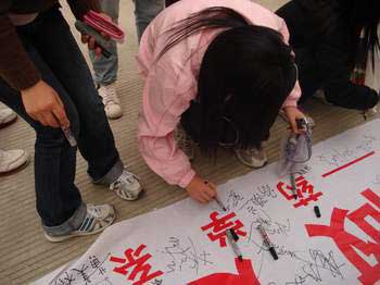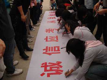 為了維護(hù)考試的公平、公正,加強(qiáng)對(duì)學(xué)生遵守考場(chǎng)紀(jì)律的教育和管理,強(qiáng)化學(xué)生的自律意識(shí),營(yíng)造誠(chéng)實(shí)守信的考試環(huán)境,樹(shù)立文明良好的學(xué)習(xí)風(fēng)尚,藥學(xué)系于2008年1月10日在系館門(mén)口舉行主題為“誠(chéng)信應(yīng)考,從我做起”的簽字儀式。