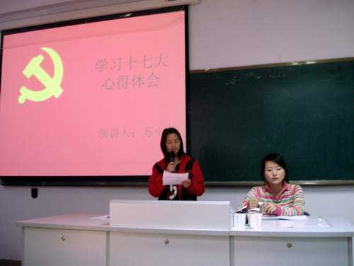 系優(yōu)秀學生代表宋建冬等同學就學習體會并聯(lián)系實際進行了發(fā)言。對胡錦濤總書記在十七大開幕式上所作重要報告,會議各階段主要工作內容以及十七大閉幕式談自己的感受和體會。