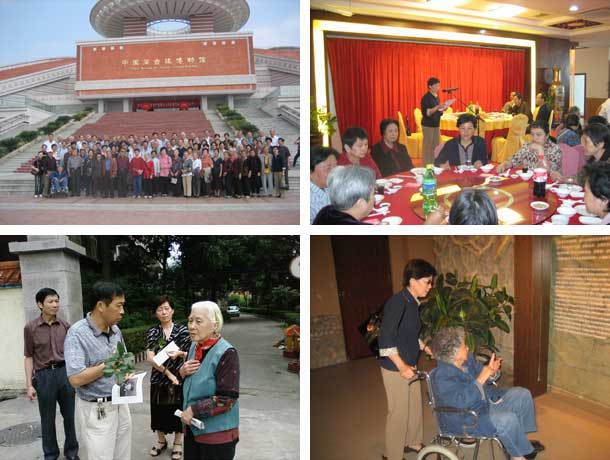 左下:重陽節(jié)嚴(yán)肅書記、陳明非院長看望原校領(lǐng)導(dǎo) 右下: 嚴(yán)肅書記和老同志一起參觀閩臺(tái)緣