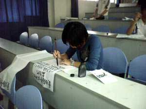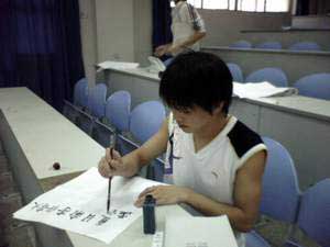 為豐富同學(xué)們的課余活動(dòng),提高對(duì)中國書法的鑒賞能力,同時(shí)發(fā)掘系部書法方面的優(yōu)秀人才,檢驗(yàn)影像系于2007年10月11日下午4:00在系二階教室舉行書法比賽。本次比賽共收到參賽作品50余件,其參賽作品之多,書法技藝之高超,令評(píng)委驚喜。經(jīng)過評(píng)委的認(rèn)真評(píng)選,最終評(píng)出一等獎(jiǎng)2名,二等獎(jiǎng)4名,三等獎(jiǎng)6名,優(yōu)秀獎(jiǎng)8名,所有的獲獎(jiǎng)?wù)叨紝@得相應(yīng)的素質(zhì)拓展加分。(檢驗(yàn)影像系)
