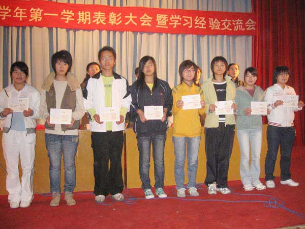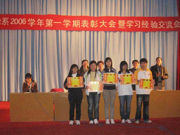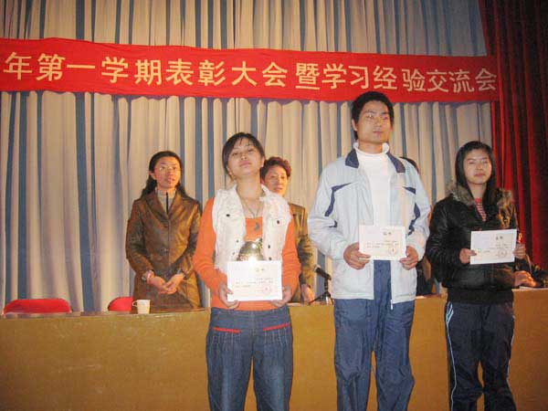 本次表彰大會表彰了2006學(xué)年第一學(xué)期榮獲各級各類榮譽的三好生、優(yōu)秀學(xué)生干部和衛(wèi)模宿舍。其中05級檢301班7604宿舍等5個宿舍榮獲“衛(wèi)生模范宿舍”稱號;高職高專班涂菊蘭等8位同學(xué)獲“院三好生”稱號、林建珍等13位同學(xué)獲“系三好生”稱號、黃增銘等1位同學(xué)獲“系優(yōu)秀學(xué)生干部”稱號、陳鳳珍等15位同學(xué)獲四等獎學(xué)金;五年專和中專班張陳蓮等32位同學(xué)獲“院三好生”稱號、陳蘭蘭等9位同學(xué)獲“系優(yōu)秀學(xué)生干部”稱號、黃祎穎等51位同學(xué)獲“系三好生”稱號、葉曉娟等17位同學(xué)獲“系優(yōu)秀學(xué)生干部”稱號、黃曉丹等82位同學(xué)獲三等獎學(xué)金、陳曉霞等12位同學(xué)獲單項獎。會上陳婉麗等6位品學(xué)兼優(yōu)的同學(xué)介紹了學(xué)習(xí)經(jīng)驗,受到了同學(xué)們的好評。