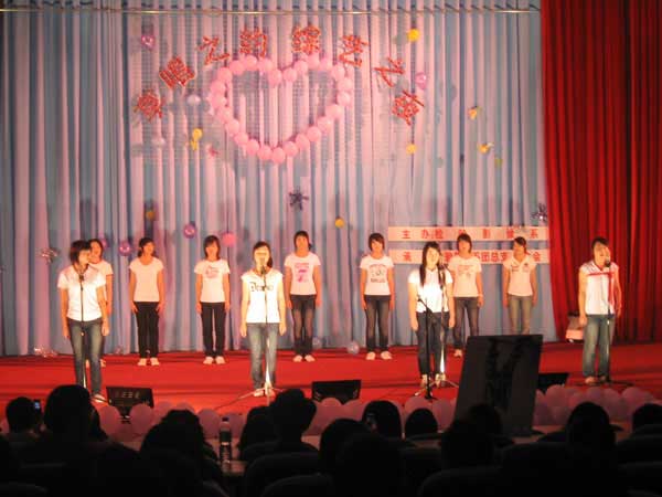 檢驗影像系于2007年5月9日晚6:00在院學術廳舉辦了“享唱之約綜藝之夜”文藝晚會。晚會以藝術節(jié)的魅力組合小組唱為主線,穿插了小品、舞蹈、話劇、小提琴獨奏、歌曲串燒等節(jié)目,使整場晚會節(jié)目精彩紛呈,形式多樣,在晚會中的游戲——最想聽你唱和爭分奪秒節(jié)目中,融入了場外觀眾的互動參與,把整場晚會推向高潮。最后,晚會在閉幕曲《年輕的戰(zhàn)場》中落下了帷幕。