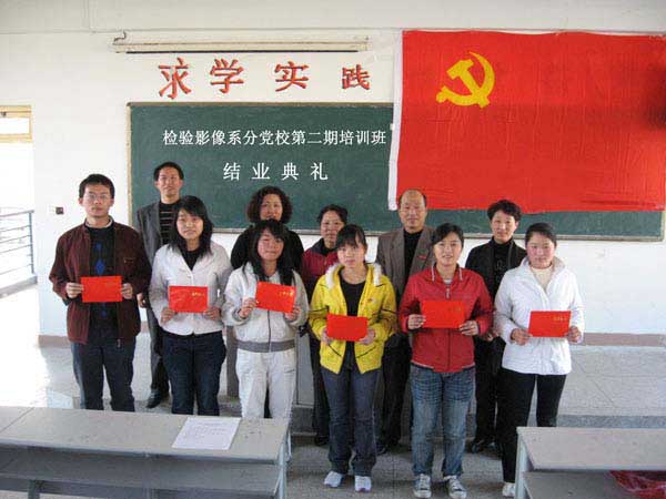2007年2月6日下午4:00,檢驗影像系第二階梯教室內(nèi)掌聲雷動,喜氣洋洋。檢驗影像系分黨校第二期培訓(xùn)班結(jié)業(yè)典禮在這里隆重舉行。院黨委陳雄副書記、系領(lǐng)導(dǎo)馬少寧主任、蘭寶金書記、第一黨支部劉瓔婷書記、第二黨支部馬小燕書記出席了開幕式。會議由陳茜老師主持。