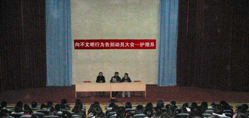 護(hù)理系于3月8日(周四)下午5點(diǎn)在院學(xué)術(shù)報(bào)告廳舉行“向不文明行為告別”系列活動(dòng)動(dòng)員大會(huì),由護(hù)理系團(tuán)總支書記林浩老師主持動(dòng)員會(huì)并作動(dòng)員講話,學(xué)工處黃銘珊老師代表學(xué)工處參加了大會(huì)并做了重要講話,李映照老師代表全系教師、林採(cǎi)平同學(xué)代表全系同學(xué)發(fā)出“告別不文明行為,展現(xiàn)天使風(fēng)采”倡議。本次動(dòng)員大會(huì)旨在調(diào)動(dòng)全系學(xué)生積極投身于精神文明建設(shè)活動(dòng),將精神文明建設(shè)活動(dòng)落到實(shí)處,在學(xué)生中深化“講禮貌,做言行文明的學(xué)生;講友善,做關(guān)愛(ài)他人的學(xué)生;講誠(chéng)信,做表里如一的學(xué)生;講衛(wèi)生,做身心健康的學(xué)生;講自立,做自強(qiáng)向上的學(xué)生”的思想。 (護(hù)理系,現(xiàn)代教育技術(shù)中心)