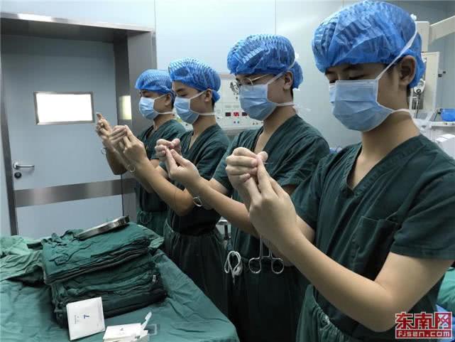 就讀福建衛(wèi)生職業(yè)技術(shù)學(xué)院三年制中職護(hù)理專業(yè)委培班的貧困家庭學(xué)子們,在手術(shù)室里練習(xí)穿針。 吳恩兒 攝