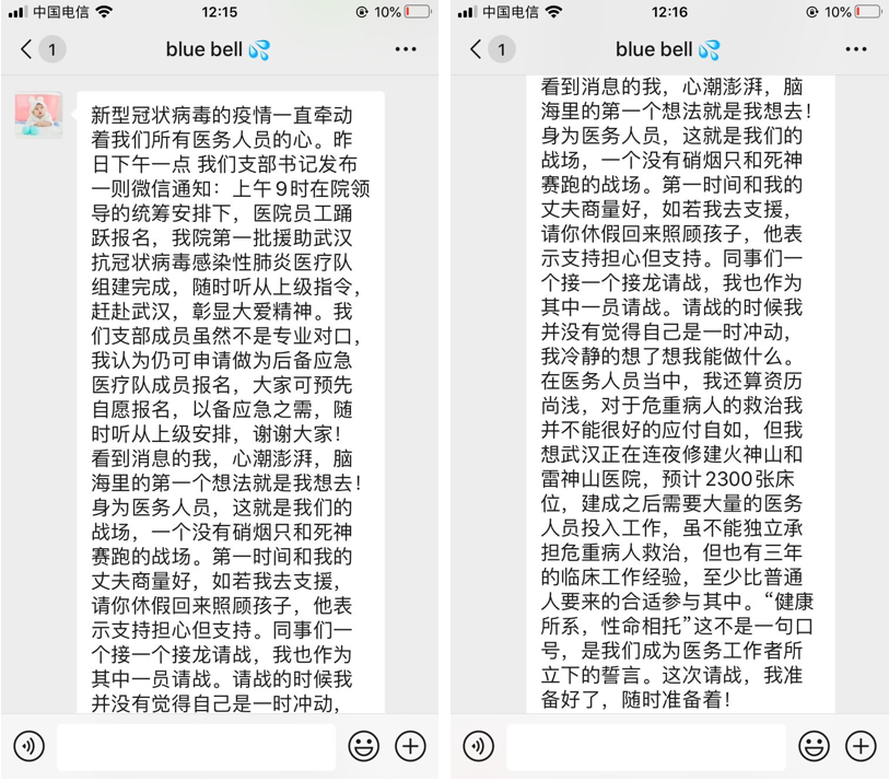 “真的很感謝父母的體諒,記得還在學(xué)校讀書的時(shí)候,爸爸就和我說(shuō),如果以后有這樣情況,要我積極報(bào)名,為自己也為需要的人做點(diǎn)事。感謝父母的養(yǎng)育,感謝學(xué)校的培養(yǎng),感謝醫(yī)院的栽培,我會(huì)不負(fù)眾望,平安而歸?!?/p>