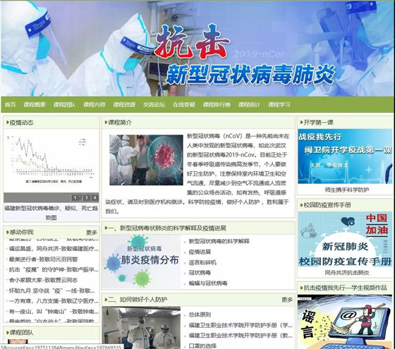 近日,一門緊扣當(dāng)下疫情防控的網(wǎng)絡(luò)課程《抗擊新型冠狀病毒肺炎——新型冠狀病毒的個人防護(hù)與學(xué)校衛(wèi)生》現(xiàn)身“天使之城”學(xué)習(xí)平臺,供福建衛(wèi)生職業(yè)技術(shù)學(xué)院學(xué)生在線學(xué)習(xí)。這門課程是學(xué)院管理系教師聯(lián)合預(yù)防醫(yī)學(xué)教研室,利用預(yù)防醫(yī)學(xué)專業(yè)優(yōu)勢開發(fā)而成。