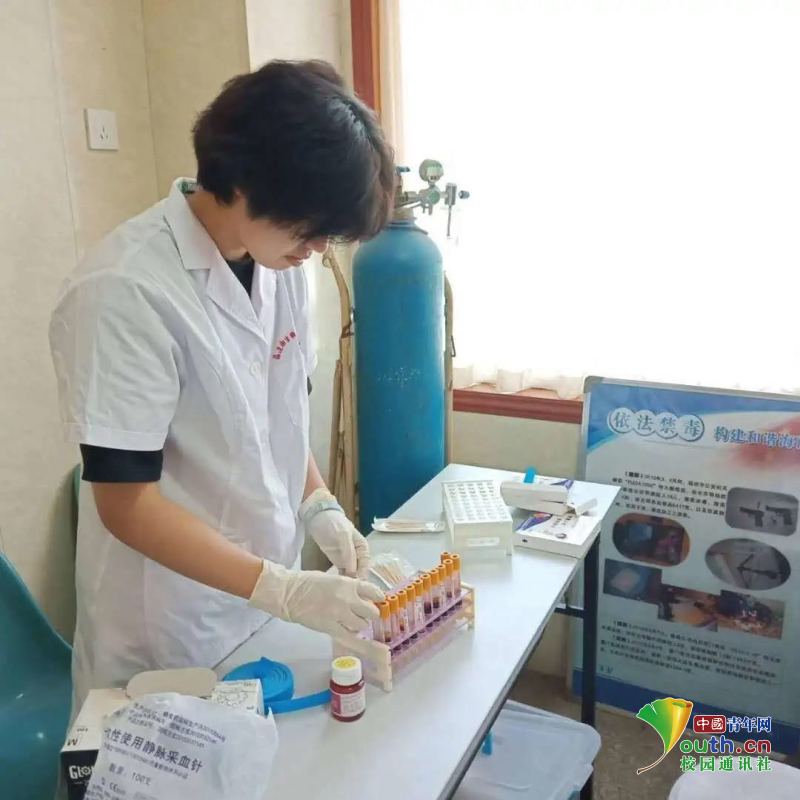 (圖為志愿者整理外出檢測艾滋病情況抽血樣本 中國青年網(wǎng)通訊員 黃慧玲)