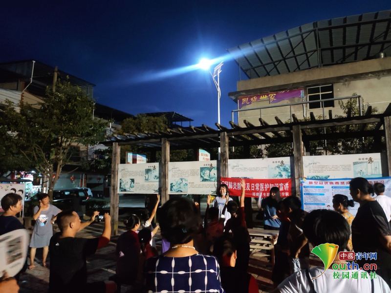 圖為志愿者在鄉(xiāng)村宣講疫情防控知識,并提問相關疫情知識問題,村民們踴躍回答。中國青年網通訊員葉瑩 攝