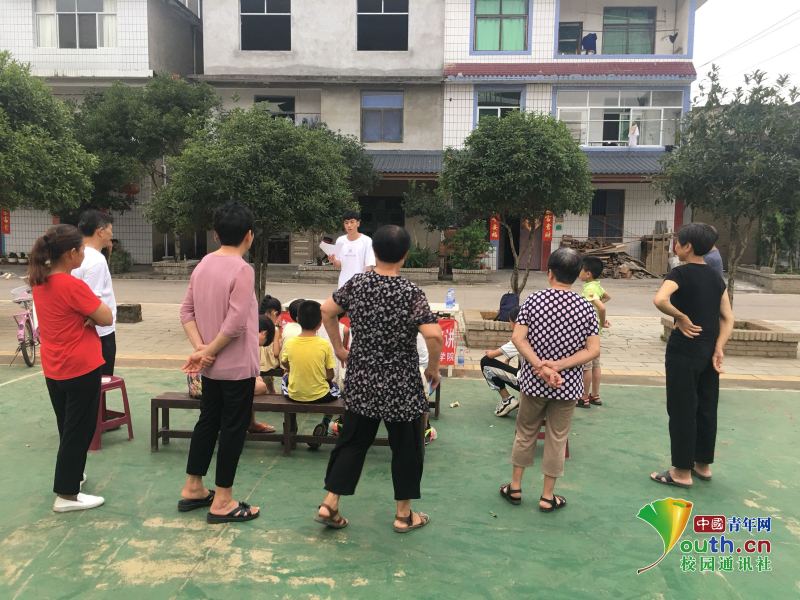 圖為志愿者在鄉(xiāng)村里宣講體育保健醫(yī)護常識,提高村民的自身身體素質。 中國青年網通訊員葉瑩 供