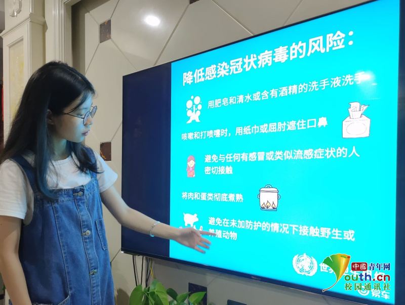 圖為廖雨珊同學(xué)線上課堂講解防疫應(yīng)急措施。中國青年網(wǎng)通訊員 曾瑾御 供圖
