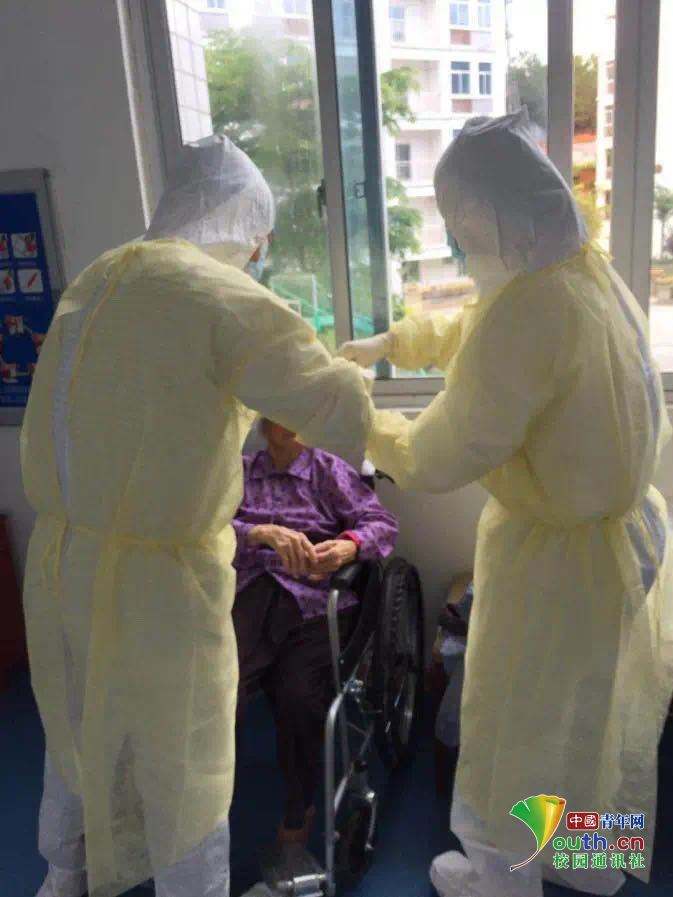 圖為鐘侶欣同學(xué)為老人進(jìn)行核酸檢測采樣工作。中國青年網(wǎng)通訊員 曾瑾御 供圖