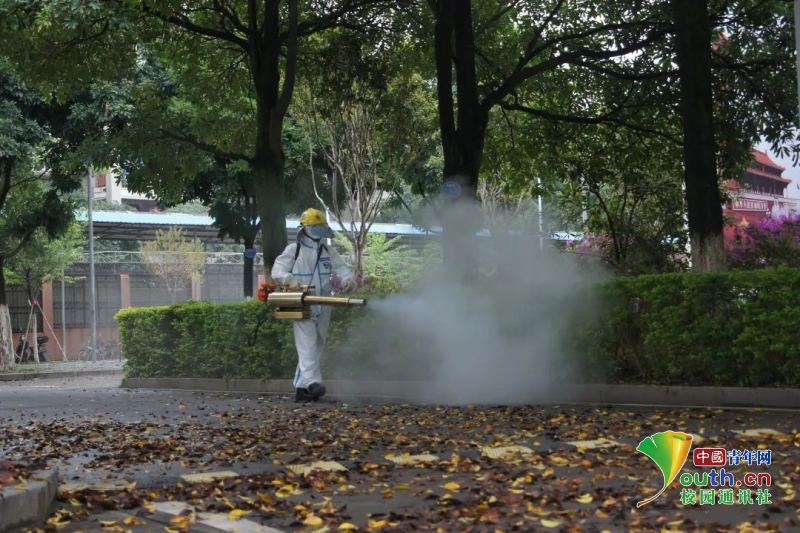 圖為曾杭同學(xué)助力高考校園參與消殺工作。中國青年網(wǎng)通訊員 曾瑾御 供圖