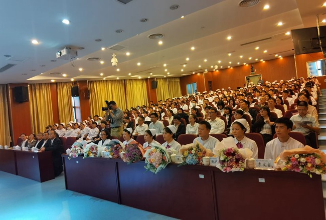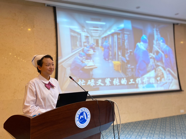 10月22日下午,第47屆南丁格爾獎(jiǎng)?wù)芦@得者、福建省赴武漢抗擊新冠疫情??谱o(hù)理隊(duì)領(lǐng)隊(duì)、福建省立醫(yī)院黨委副書(shū)記李紅受邀并帶領(lǐng)福建省立醫(yī)院部分援鄂醫(yī)療隊(duì)員一行8人,走進(jìn)福建衛(wèi)生職業(yè)技術(shù)學(xué)院開(kāi)展“生命至上,人民至上”為主題的援鄂戰(zhàn)“疫”事跡報(bào)告會(huì)。學(xué)院全體校領(lǐng)導(dǎo)、中層干部、教師代表和學(xué)生代表等230多人在報(bào)告廳會(huì)場(chǎng)聆聽(tīng)事跡報(bào)告,其他師生通過(guò)網(wǎng)絡(luò)平臺(tái)在線觀看直播并參與積極評(píng)論,與報(bào)告團(tuán)嘉賓共同回顧那段刻骨銘心的感人經(jīng)歷,聆聽(tīng)那一曲曲激蕩心靈的英雄贊歌。