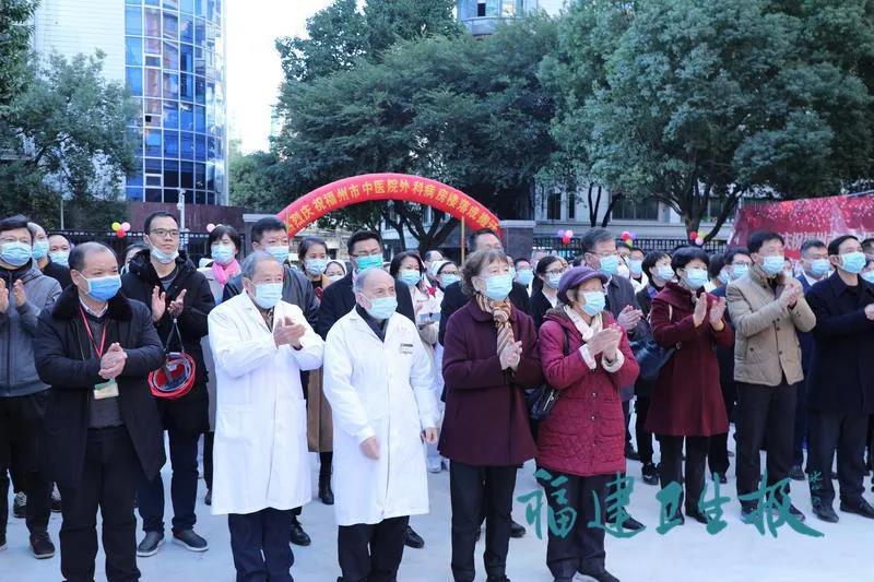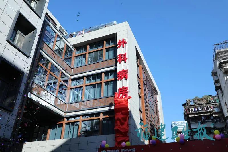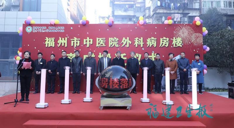 落成儀式上,福建省政協(xié)副主席阮詩瑋等領(lǐng)導共同按下啟動按鈕,為福州市中醫(yī)院外科病房樓揭牌。