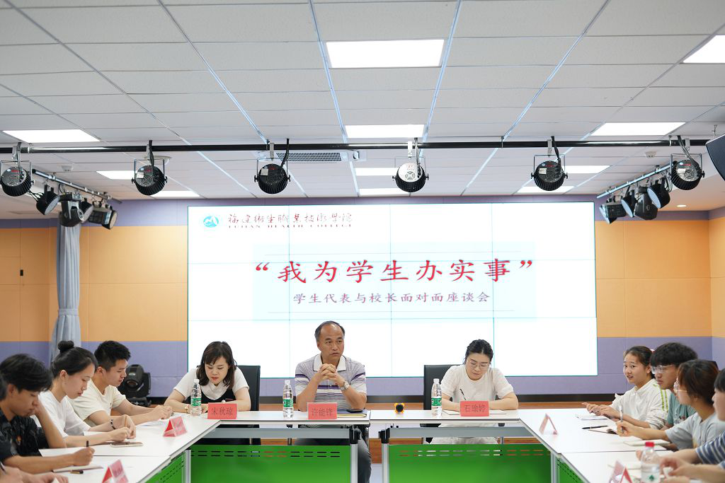 5月20日下午,福建衛(wèi)生職業(yè)技術(shù)學(xué)院校學(xué)生會在團委青年之家舉辦“我為學(xué)生辦實事”黨史教育實踐活動調(diào)研暨院長許能鋒與學(xué)生代表面對面座談會?;顒訌牡谖宕螌W(xué)生代表大會的代表中隨機抽取35名學(xué)生與校長共話校園事,共議學(xué)校發(fā)展。